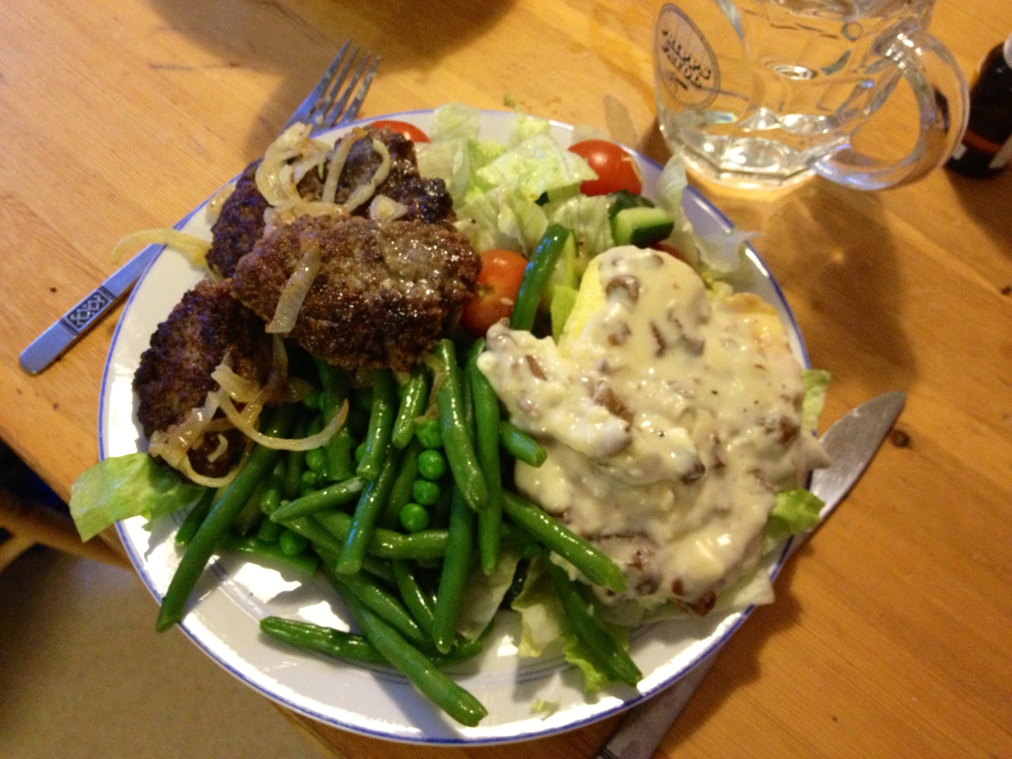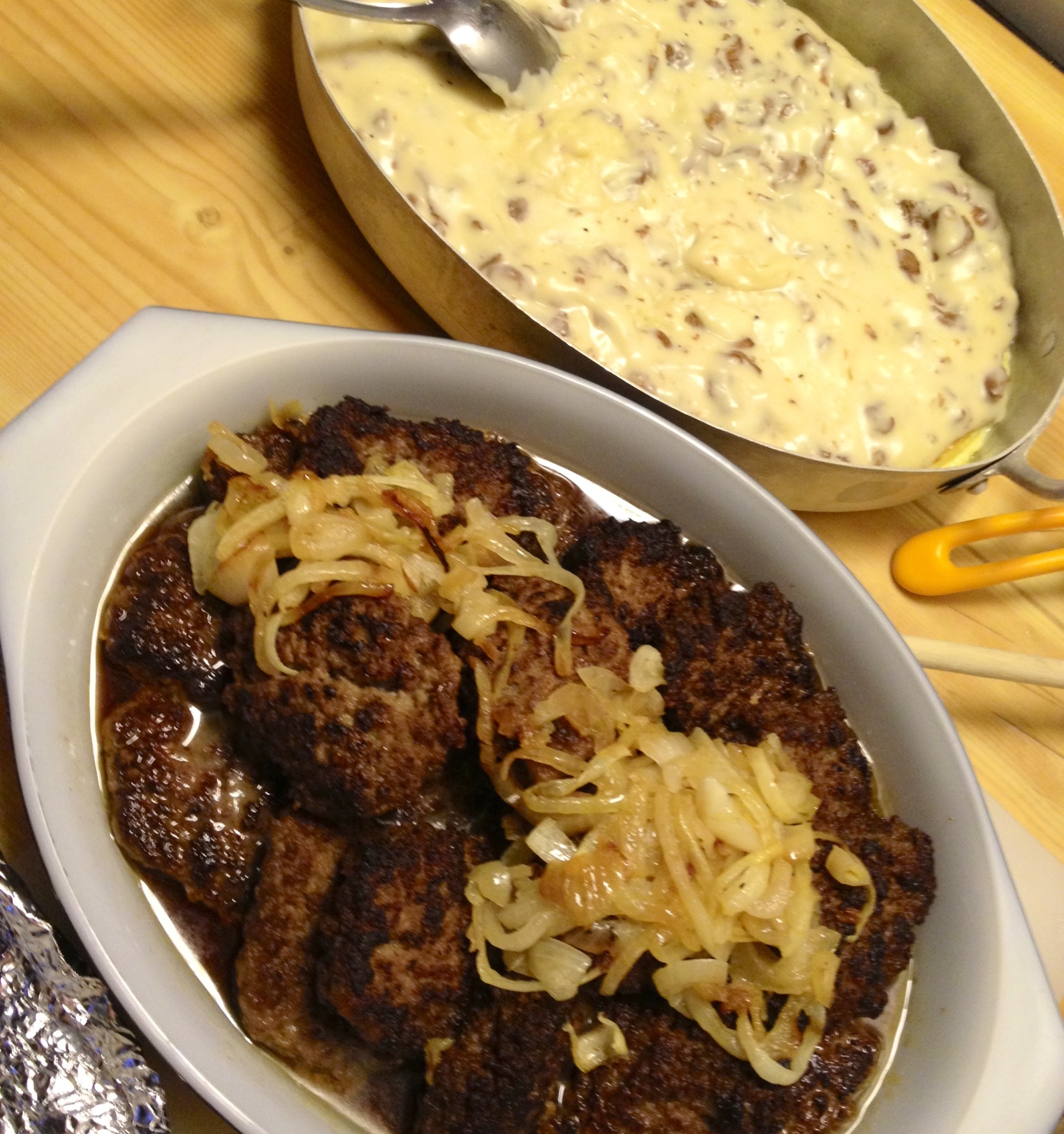 Vi mellanlandar ett dygn i Falun och välkomnades med svärmors bästa – köttfärsbiffar med stekt lök och omelett med svampstuvning. Hon frågar ibland om vi inte vill ha något annat när vi kommer ”som omväxling”, men hela familjen svarar enigt ”NEJ!”. Alla älskar farmors biffar.
