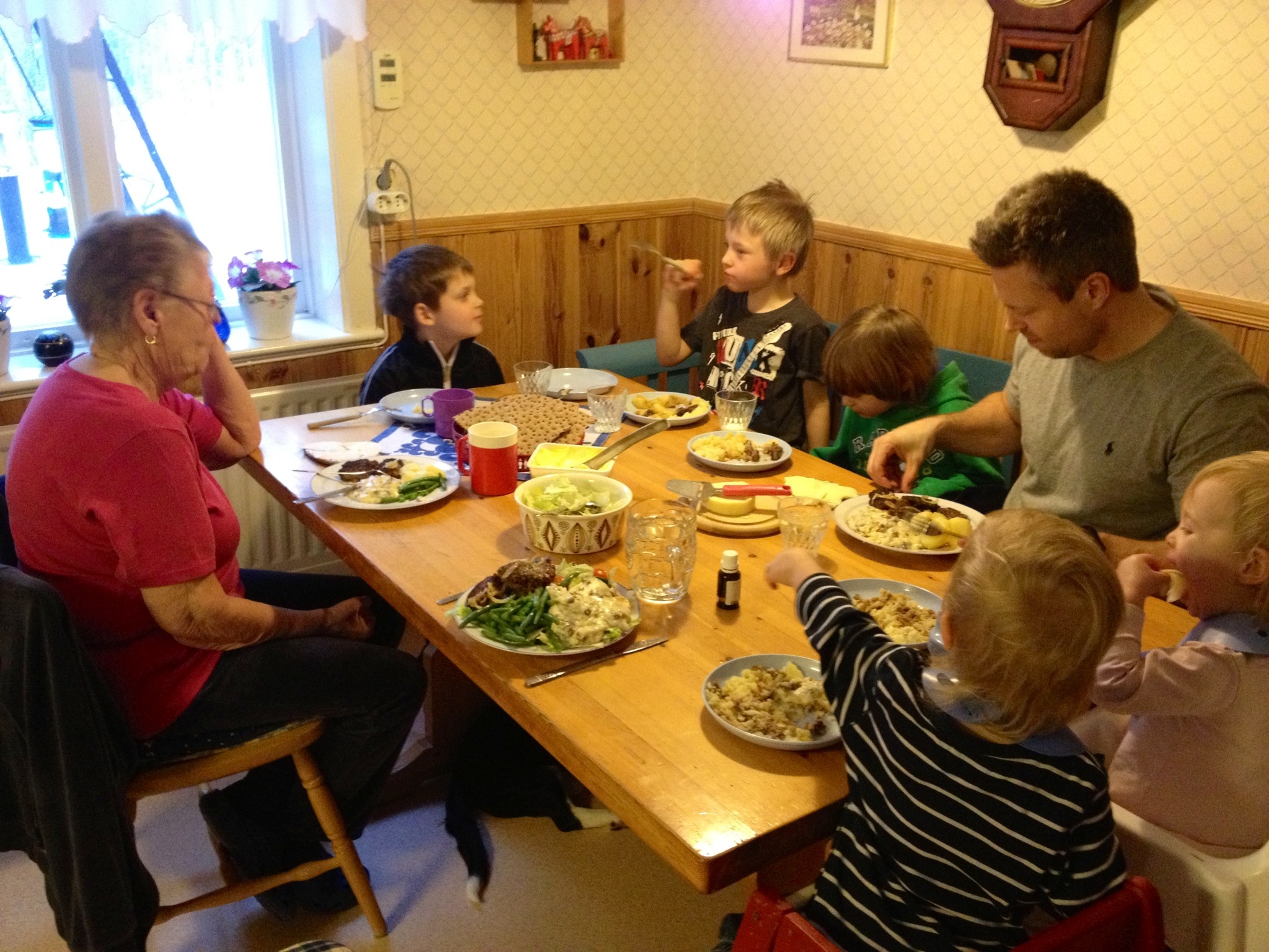 Men de ska serveras i det lilla Dalaköket i hennes sällskap för att smaka som bäst. Idag även sällskap av barnens jämnåriga kusin till grabbarnas belåtenhet.