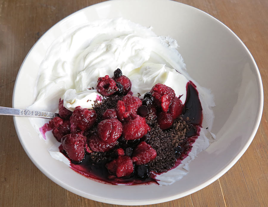 Annars passade persika bra till kesella och bär, men rent vaniljpulver slår  smaken på vaniljdropparna (och är betydligt mer naturligt). Annars är ett droppar ett snabbt sätt att både smaksätta och söta på en gång. Smidiga miniflaskor att ha med så här på resan också.