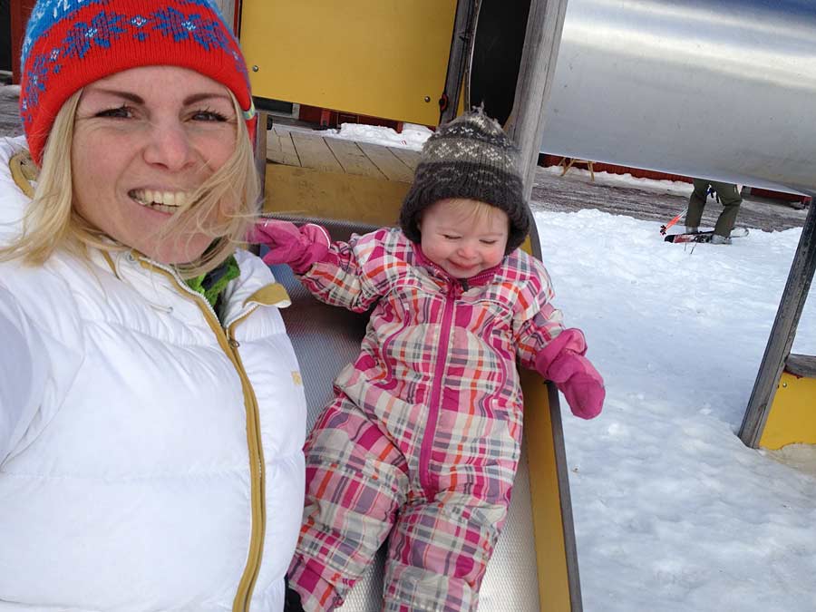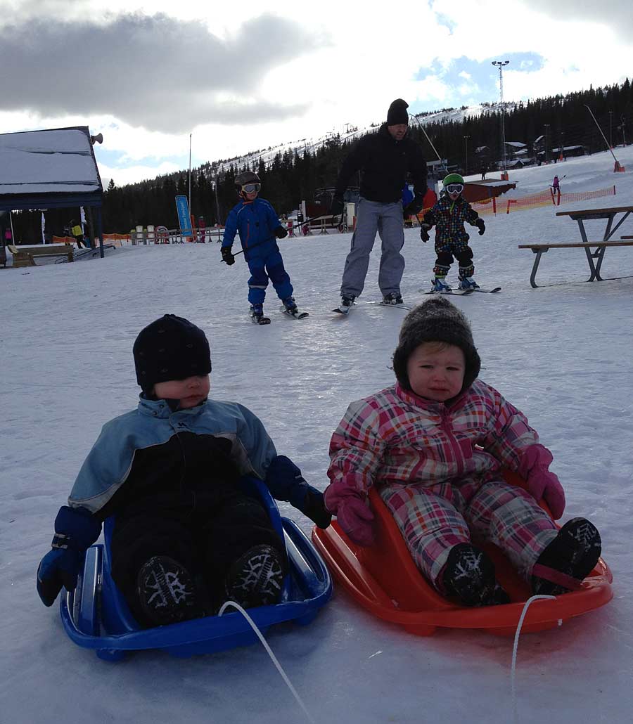 ..rutschkana med tvillingarna. Men nästa gång kanske det blir miniskidor även för de små?