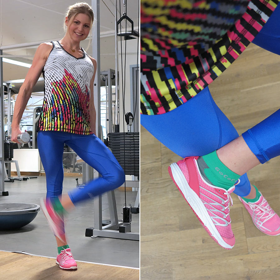 Dagens träningsoutfit (ett tydligt bevis på mitt humör :): Linne och tajts – Röhnisch, strumpor – Gococo, skor –Merrell.