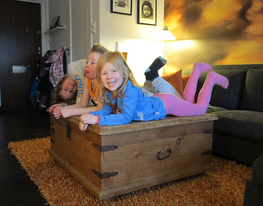 Ett annat bord fullt av kaxiga kusiner – Hampus, Hugo och syrrans Olivia som fick äta innan oss. Lugnast så 🙂