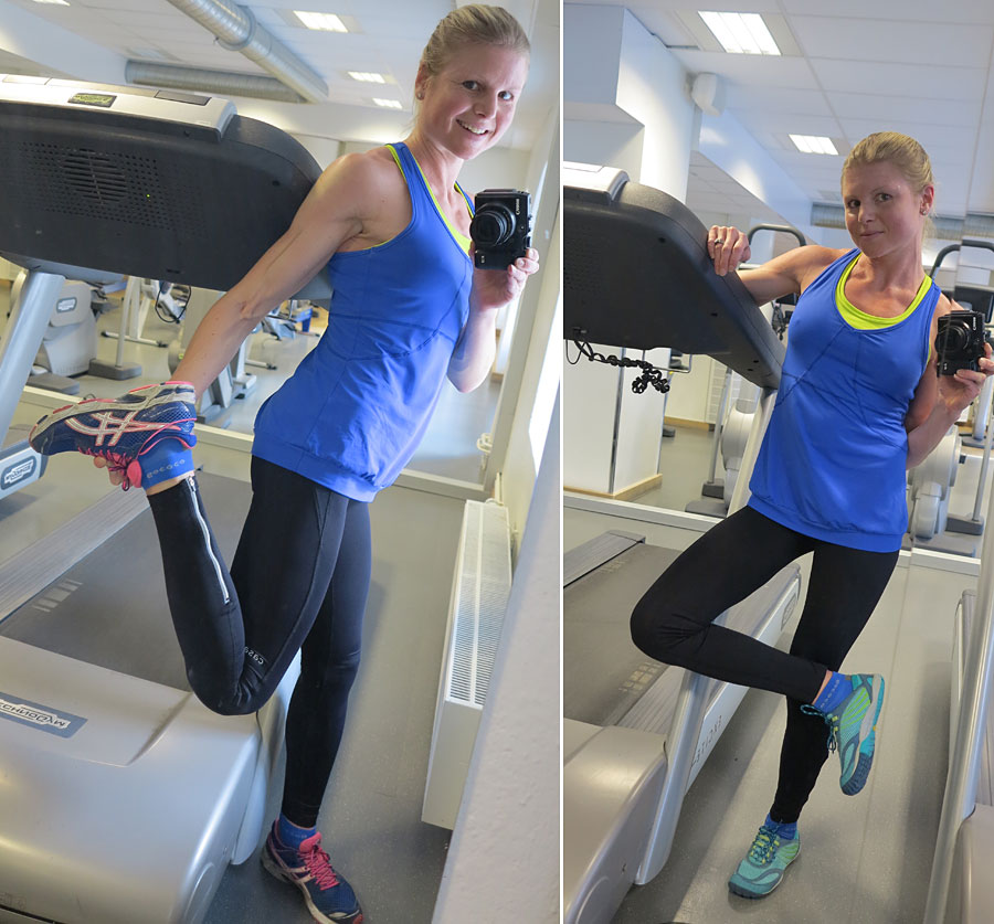 Dagens löpoutfit: Linne, sport-bh och tajts – Casall, strumpor – Gococo, skor –Merrell och Asics.