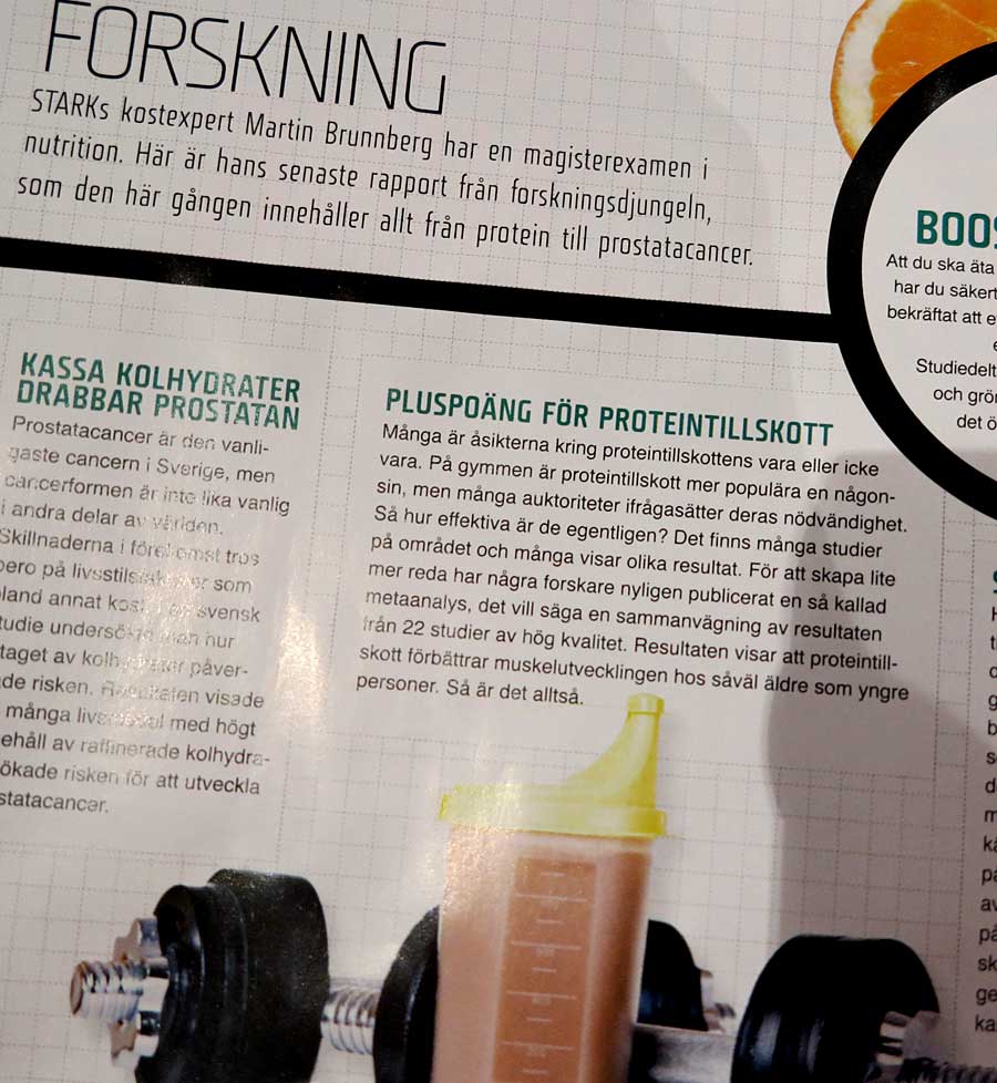 I senaste STARK Magasin läser jag om att proteintillskott enligt en metastudie (där resutat av 22 studier slås samman) ”förbättrar muskelutvecklingen hos både yngre och äldre”. Sen beror det förstås på vad man är ute efter och som vanlig motionär är pulver inte nödvändigt. Det går att få fina resultat utan och jag propsar aldrig för att mina kunder ska använda det, men ger tips till de som vill testa eller letar efter något nytt.