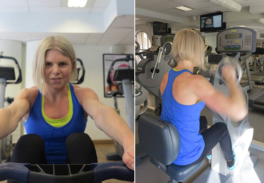 Mest komplett träning när jag vill köra igenom hela kroppen på ett tidseffektivt sätt, få puls och slippa tänka så mycket är roddmaskinen. Så 40 minuter på den (ca 8700 meter), 5 minuter på trappmaskin och 5 minuters armcykling (där har du nya fisyren i nacken också Annette 🙂 körde jag idag. Ett bra sätt att få konditionsträning för hela kroppen – speciellt rodden är grym för att lära kroppen transportera runt syre och blod till alla muskler samtidigt.