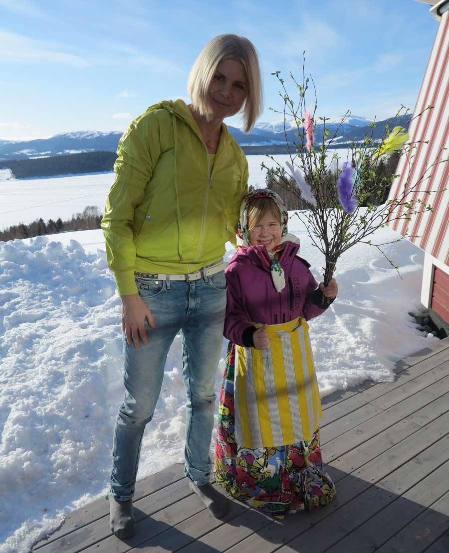Resan hit är lång. Det kräks, tjatas om ”hur långt är det kvar?”, tappas nappar och bråkas om vems tur det är att ha iPaden men SÅ värt. Vi anlände till ett solgassande Jorm och hus dekorerat med vackra ris, tuppar och gult – 100% påsk i mina ögon. Systerdotter Olivia har gått påskkärring och resten fångat solen på uteplatsen.