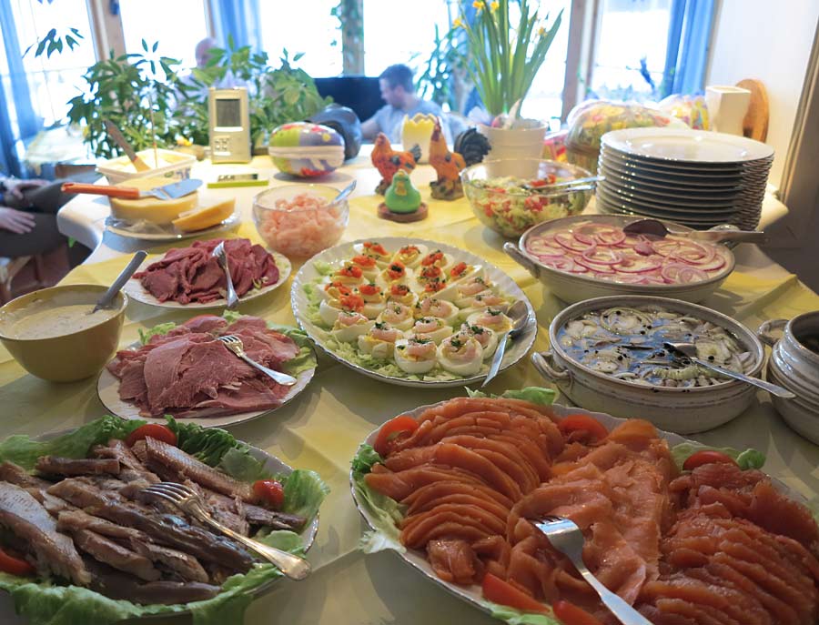 Vaknar upp, fortfarande mätt efter gårdagens gormetmat. Älskar verkligen den här maten som vi äter med mindre variation varje påsk, jul och midsommar. Fräscht med massor av fisk, ägghalvor och rökt kött. Mina föräldrar både gravar egen röding och röker sitt egna nötkött. Så gott och tallriken ovan var inte det enda som slank ner.
