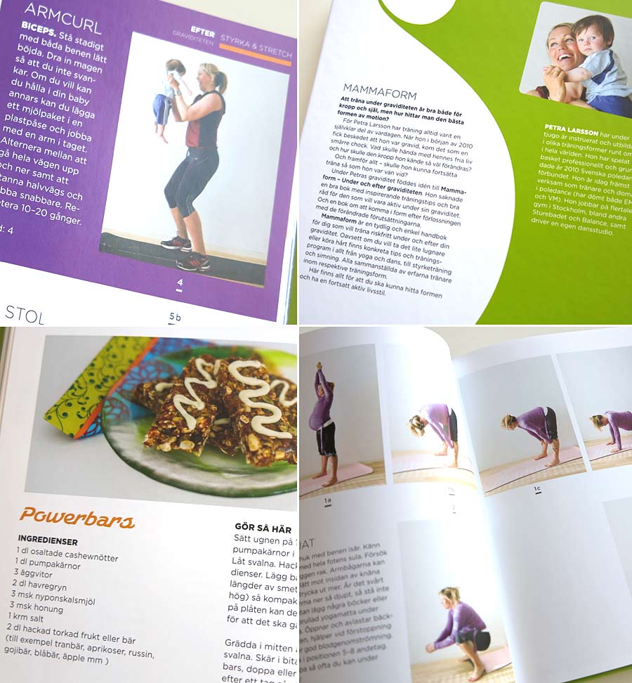Den bok jag själv haft stor trygghet av vid min graviditet nr 2 och 3 (boken fanns inte vid 1a graviditeten med trillingarna), även om jag inte kunde gå helt efter den då jag väntade tvillingar, är den här. Den känns väldigt grundlig, men Mammaform kompletterar bra genom att ta upp andra träningsformer som yoga, dans, träning tillsammans med ditt barn och simning. Dessutom kryddar hon med smaskiga recept och generella tips boken igenom.