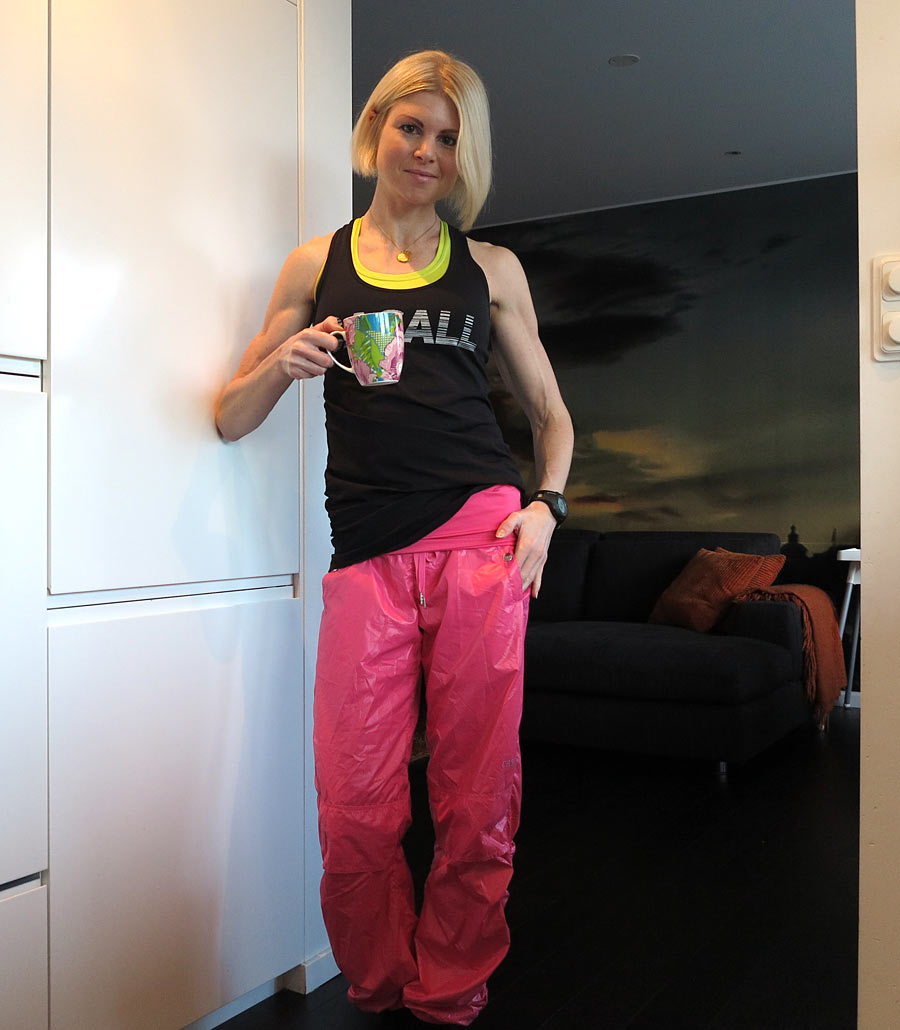 1. Så länge kläderna fyller sin funktion och jag fortfarande trivs i dem får de hänga med. Kläderna är verkligen viktiga för min träning. Om jag känner mig fin går det lättare intalar jag mig. 🙂