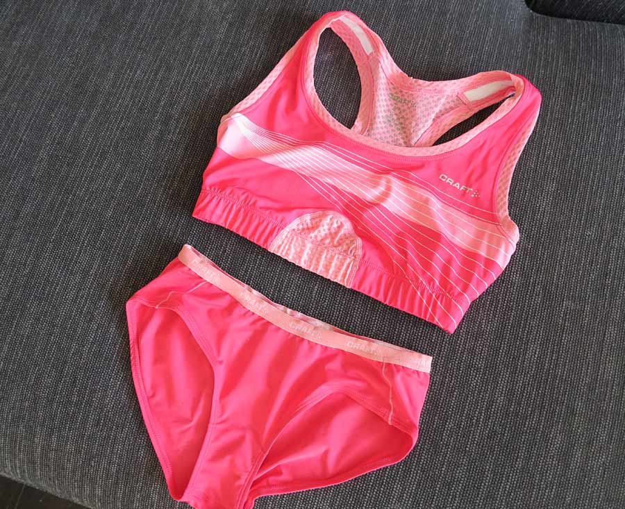 Under tröjan en snygg sport-bh och tunna funktionstrosorna. Svårt att klä sig inför så långt pass, speciellt nu när våren inte riktigt vill bestämma sig för att komma eller inte. Lager på lager är dock alltid bäst så att man kan klä av sig om det blir för varmt.