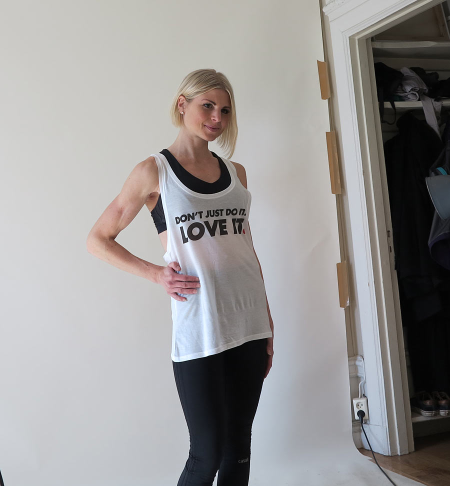 Skapar-, tränings- och klädintresset gjorde valet lätt när Daniel, grundare och ägare av Stronger Fitness, frågade om jag ville ta fram ett tryck till ett linne. Roligt att själv komma på text till ett budskapstryck som är så trendigt just nu och igår blev jag plåtad i linnet. Jag ville få in mer ”kärlek till träning” i mitt budskap – att träning handlar om mer än utseende. Dessutom något jag själv känner och önskar att alla lär sig känna för träning. Därav: