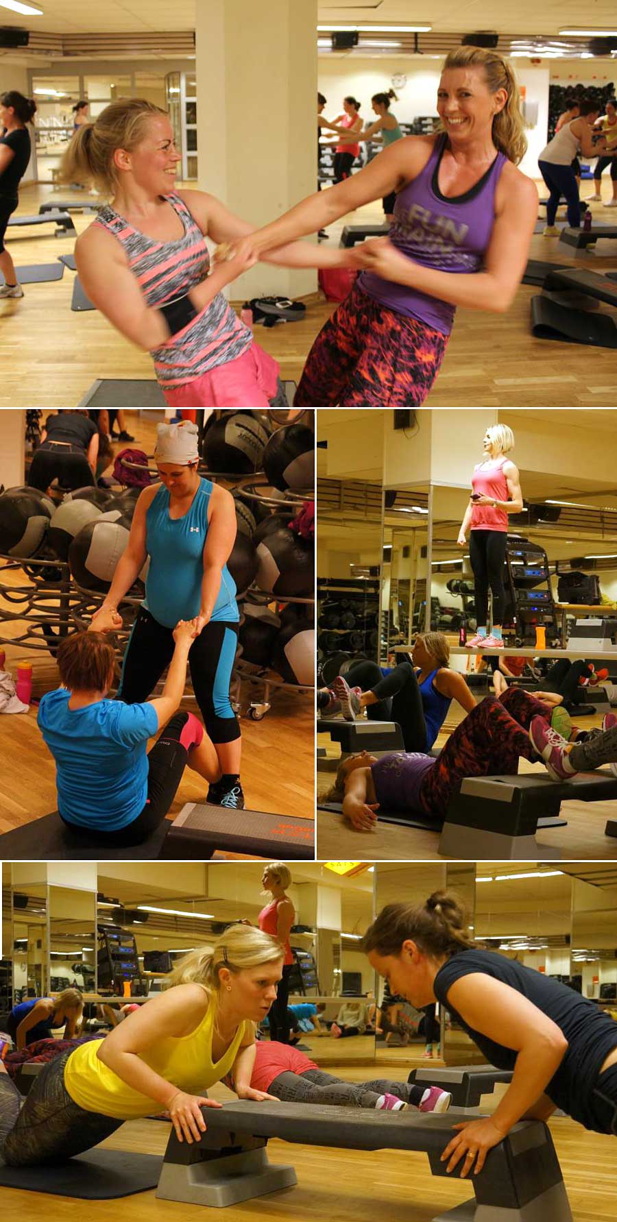 Vi jobbade mycket med parövningar, t.ex. i ”rodd/rygghävning med partner”, djupa knäböj, höftlyft och ”sågen”. Enkla övningar som går att göra tuffa om man önskar. Bilder på detta ovan lånade från Träningsevent.se på Facebook. Samtliga övningar i tabataintervaller och avslutningsvis 20 minuters yogastretch. Mammorna fick alltså både svettas och relaxa lite. Alla jobbade superbra och det är så härligt att se sån energi och glädje. Bästa med instruktörsyrket 🙂