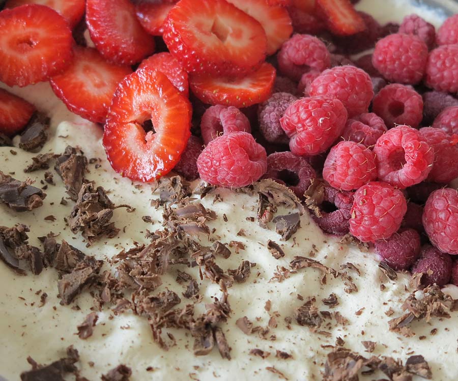 - Dekorerar med hallon eller vad du önskar och ställ i frysen minst 2-3 timmar.