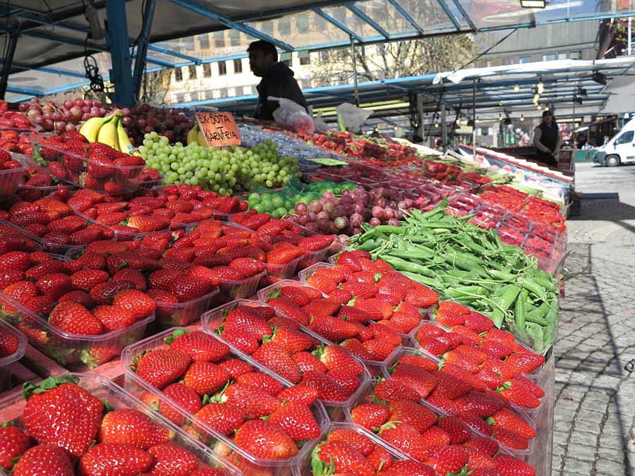 Mellan två möten på stan igår laddade jag upp med sol, bär och grönsaker på Hötorget. Det är sommar för mig med färskt från torget och så vackert och frestande med alla färger. Jag ler alltid åt gubbarna som ropar åt sig kunderna med ”Vackra flicka med cykel! Halva priset – bara för dig!”.