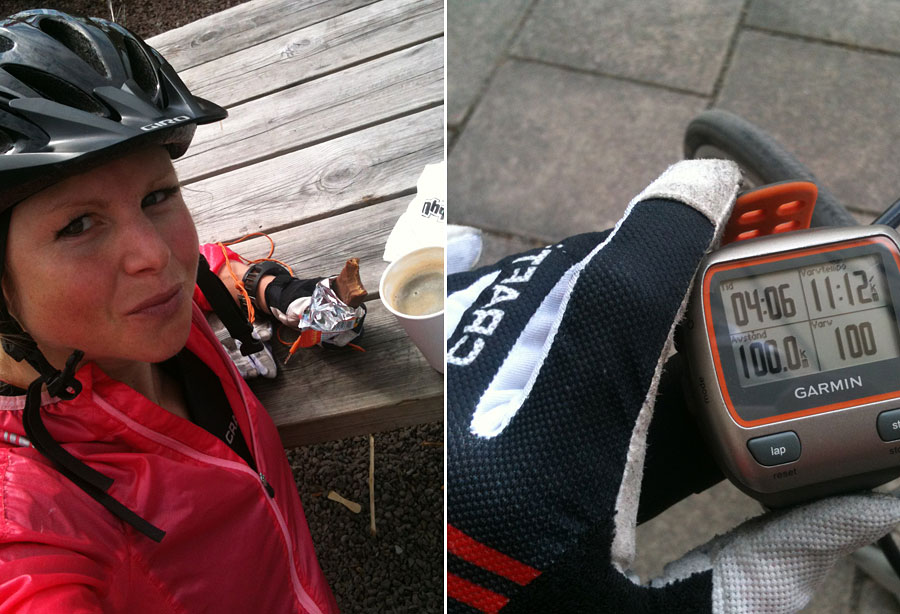 1. Bra trampat!!! Inte ofta man fikar då man är ensam, men kroppen behöver en paus. Tänk på att lära dig att äta och dricka i farten också, det är jag lite halvdåligt på. Jag vågar aldrig ha musik då jag cyklar….