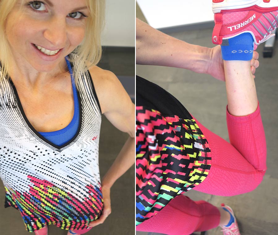 Dagens smällkaramell till träningsoutfit: Linne – Röhnisch, tajts – Casall, sport-bh och strumpor – Gococo, skor – Merrell. Visst blir man glad av färg? 🙂
