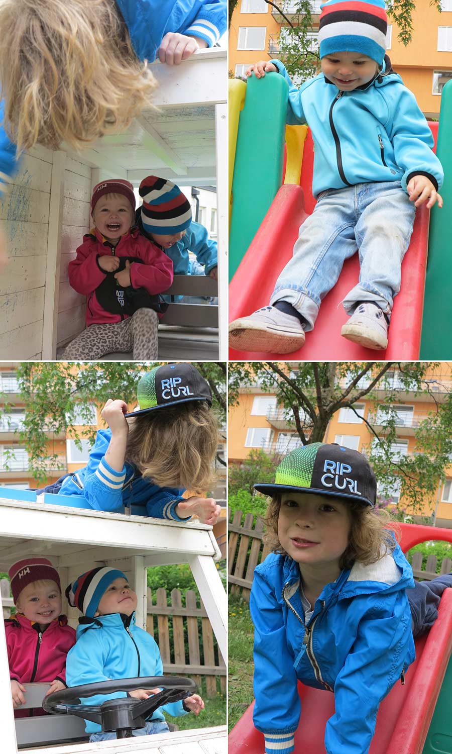 De tre yngsta barnens förskola var stängd för planeringsdag så vi har hängt i parken, lekt/tränat på MiniSats/SATS, softat hemma, ätit glass (med vredesutbrott för Jonna när jag var tvungen att ta glassen och BETALA. Håller med. Otroligt dumt 😉 och gått promenad för att hämta Hugo och kompis på skolan. Inget märkvärdigt men det är kanske det som är så bra. Att man kan glädjas åt det lilla och vardagliga.
