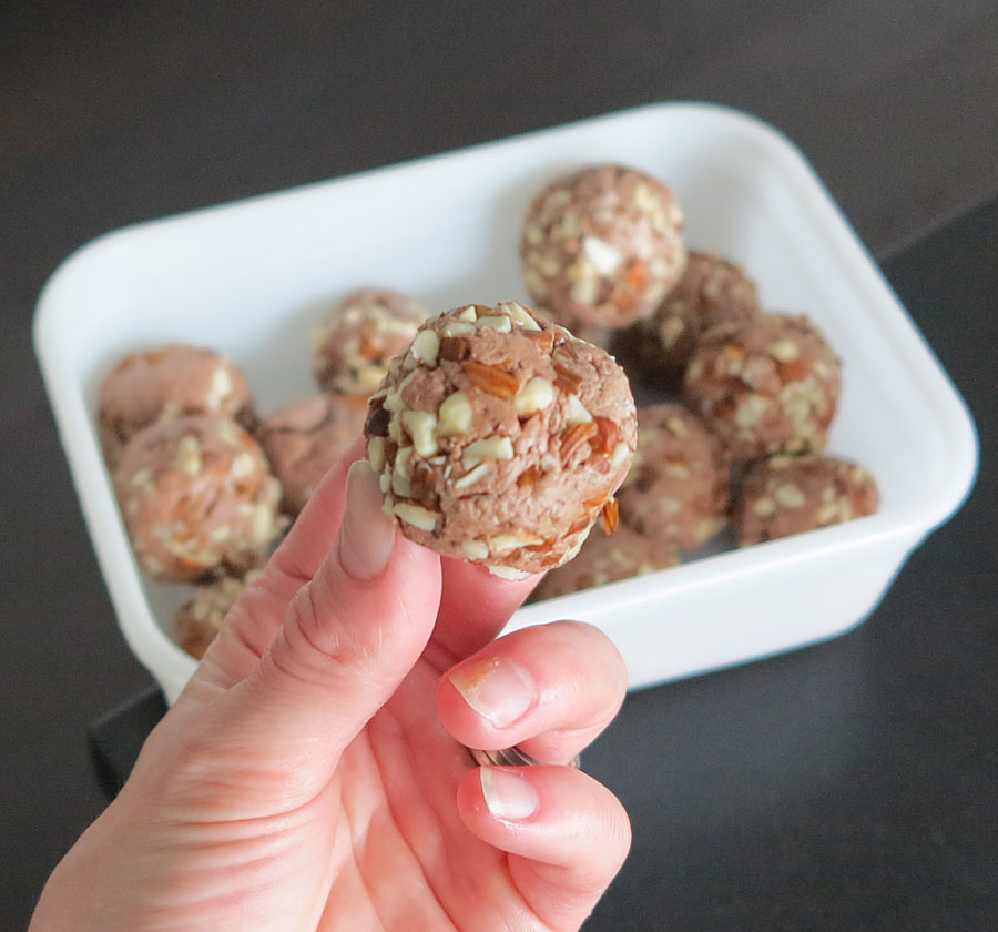 Proteinbollar har jag gjort i alla möjliga varianter och vad jag har i beror på vad som finns hemma i skåpen. I helgen hade jag precis alla ingredienser jag önskade och fick till riktigt goda bollar. Något att snabbt stoppa i munnen stressiga dagar eller den lilla cykelväskan under sadeln på långpass? Packade med energi i form av mandel (både i mjöl-, smör- och nötform), kokosolja, pumpakärnor och långsamt protein från Gourmet-Pro + Whey-80 Ice Coffee som innehåller koffein.