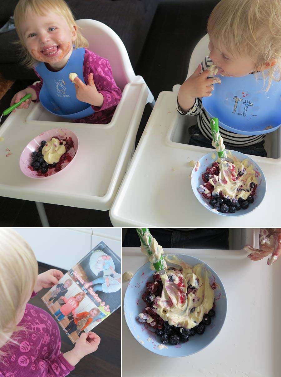 ..och förskottsfödelsedagsbarnen. Eftersom den funkade med händerna och passade till halvtinade bär som de älskar. Sen var det bara rakt ner i badkaret innan presentutdelning. Lyckan är total även om det riktiga barnkalaset blir helgen efter Jonas kommit hem.