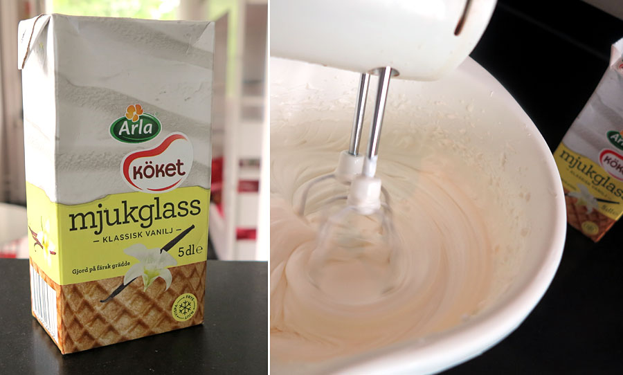 Med glass! Självklart måste en glasstok som jag testa Arlas nya mjukglass för hemmabruk. Bara vispa, frysa, och vispa lite till före servering. Får bra betyg av glassexperten (mamman)..