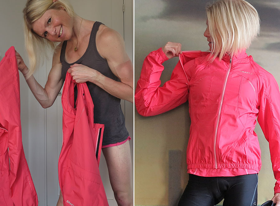 ..CRAFT-jackan som snabbt går att förvandla till ärmlös väst. Ärmarna sitter ihop med en tryckknapp i nacken och var sen bara att lägga i cykelväskan (bild på min Instagram).