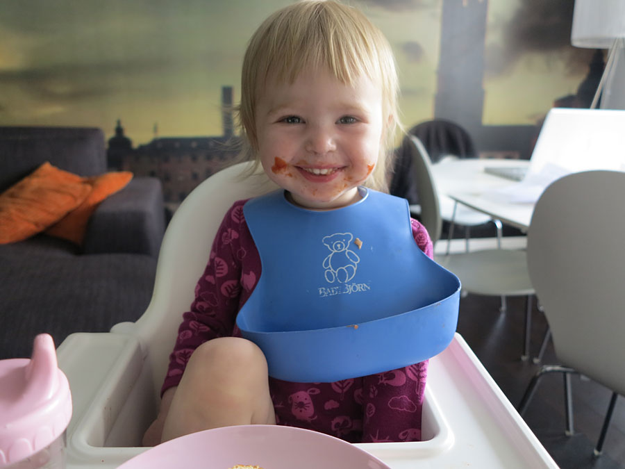 En som alltid tycker det är rätt tajming för pastaladdning. Med hela ansiktet dessutom 🙂
