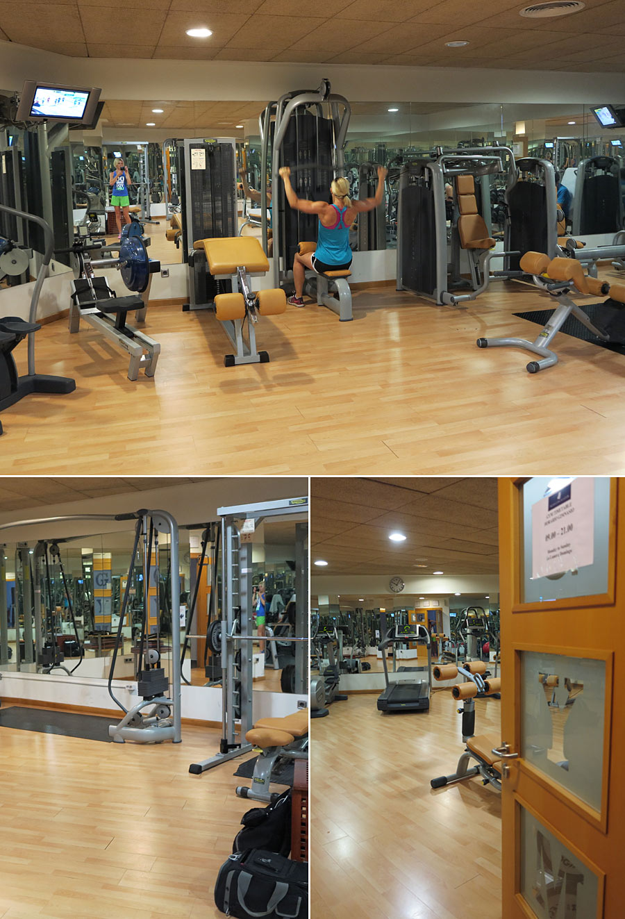Gymträningen kör vi på lyxiga Yacht Club Cala dÓr – ett större hotell vid hamnen som har ett helt ok gym för 40 euro/vecka. Själv tränar jag lätt just nu, med runt 15 reps/set och mycker super- och dropset för att hålla passen korta och effektiva.