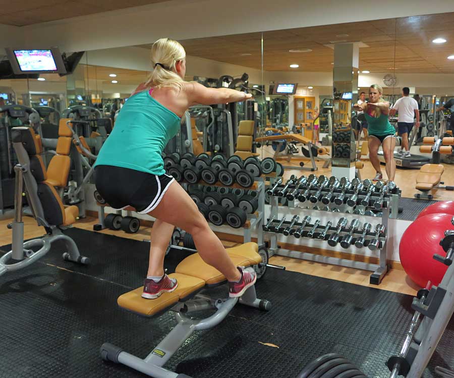 Jag passade även på att köra endel tunga benmaskiner som inte går att göra i Jorm. Men det finns många bra benövningar utan vare sig vikter eller maskiner. Enbens knäböj är ett bra exempel som du ser Therese göra på Mallisgymmet ovan. Tung och fantastiskt bra träning för hela låren, rumpan och musklerna runt knän (grym för att motverka knäskador). Tänk på att lägga mer tyngd på hälen än framfoten för att inte överbelasta knät och gör så här: