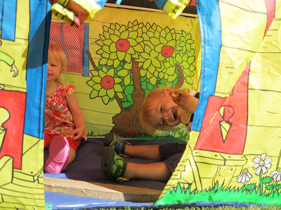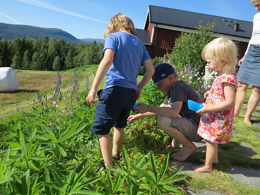 Massor av utomhuslek. Barnpoolen har åkt fram från häbret och studsmattan har dammats av. Där kör barnen brottningsmatch om vems tur det är att hoppa. Jonna eller Junior i sin envisa egoålder brukar vinna.
