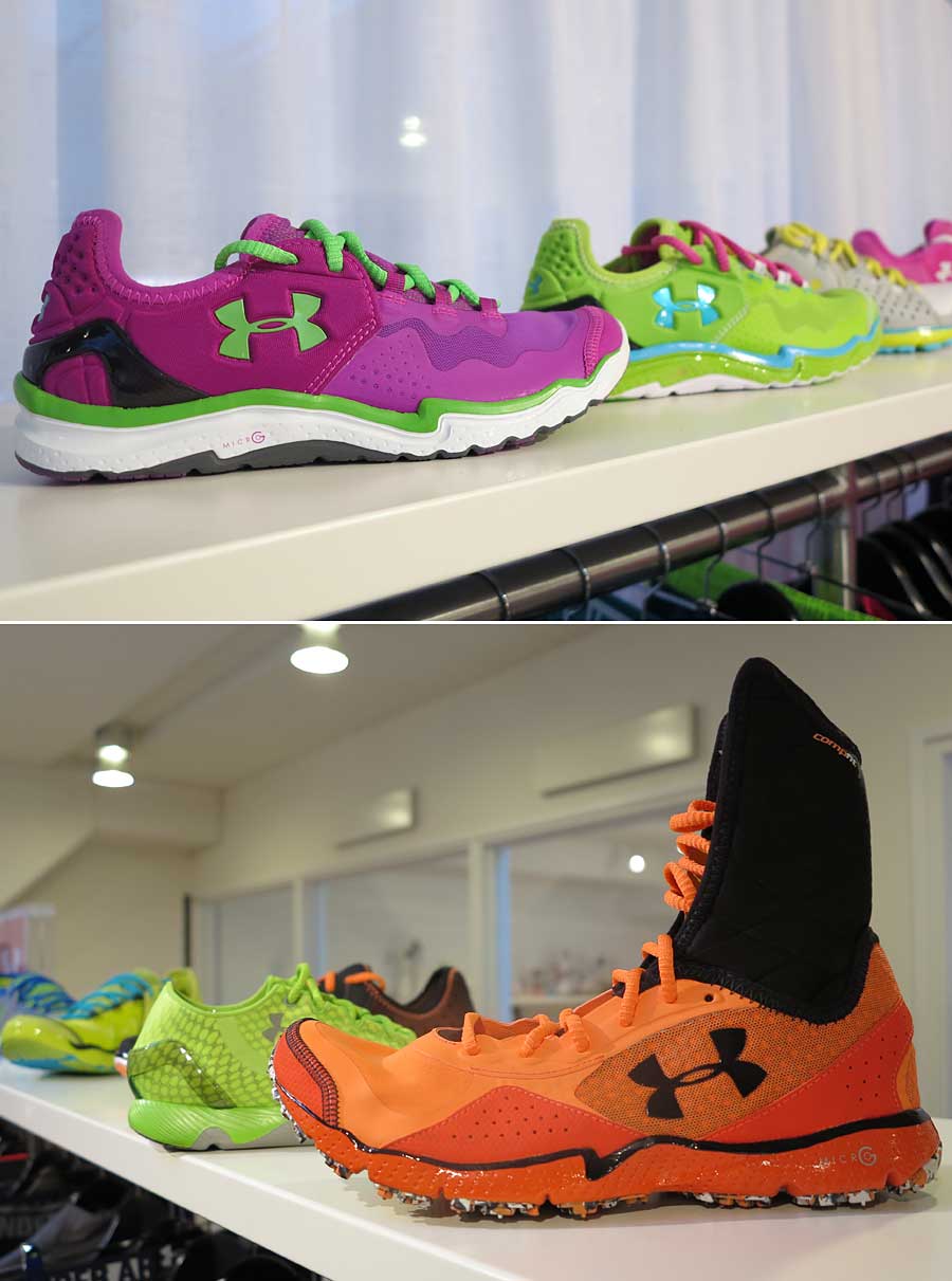 Även skorna sprakar i färg. Det går alltid att hitta ett par som matchar träningskläderna, och jag måste säga att herrmodellen med ankelskydd är riktigt coola.
