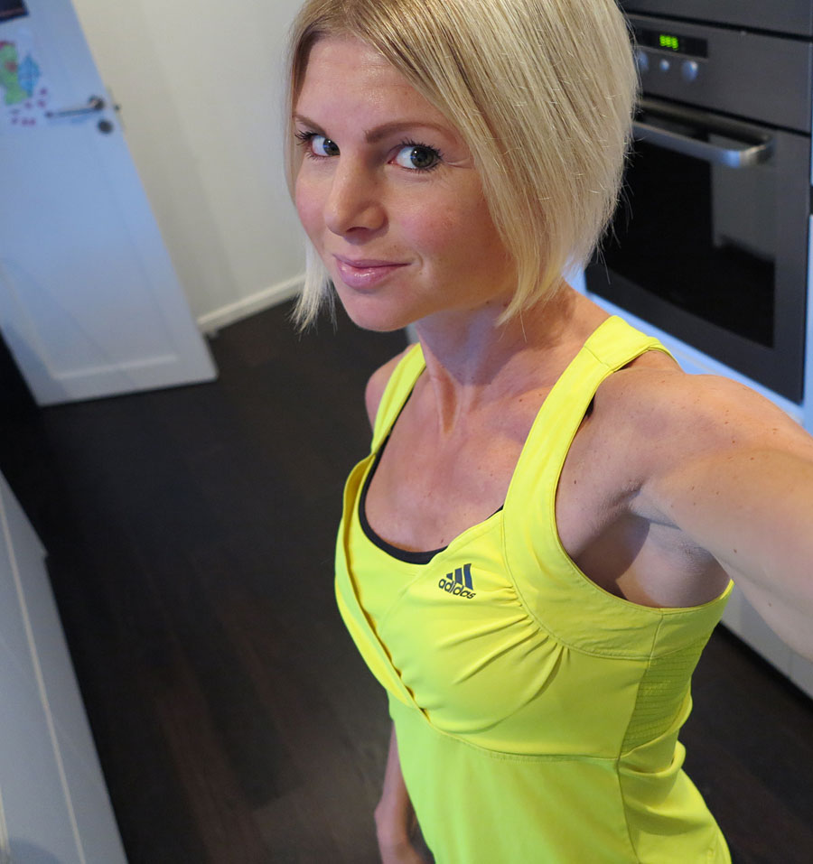 Dagens träningsoutfit: Linne – Adidas, tajts och sport-bh – Casall, strumpor – Gococo.