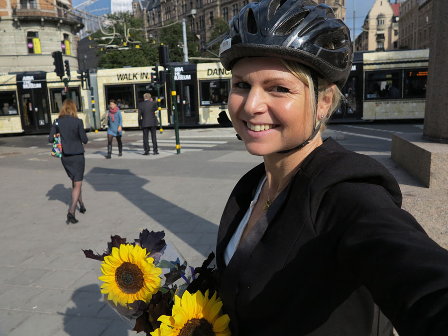 Inte varje dag jag får blommor av Jonas, men det var mest för att jag skulle ta dem på MIN cykel istället för hans egen. Värt, för nu blev det jämnvikt i vasen i köksfönstret där de lyser så gult och glatt.