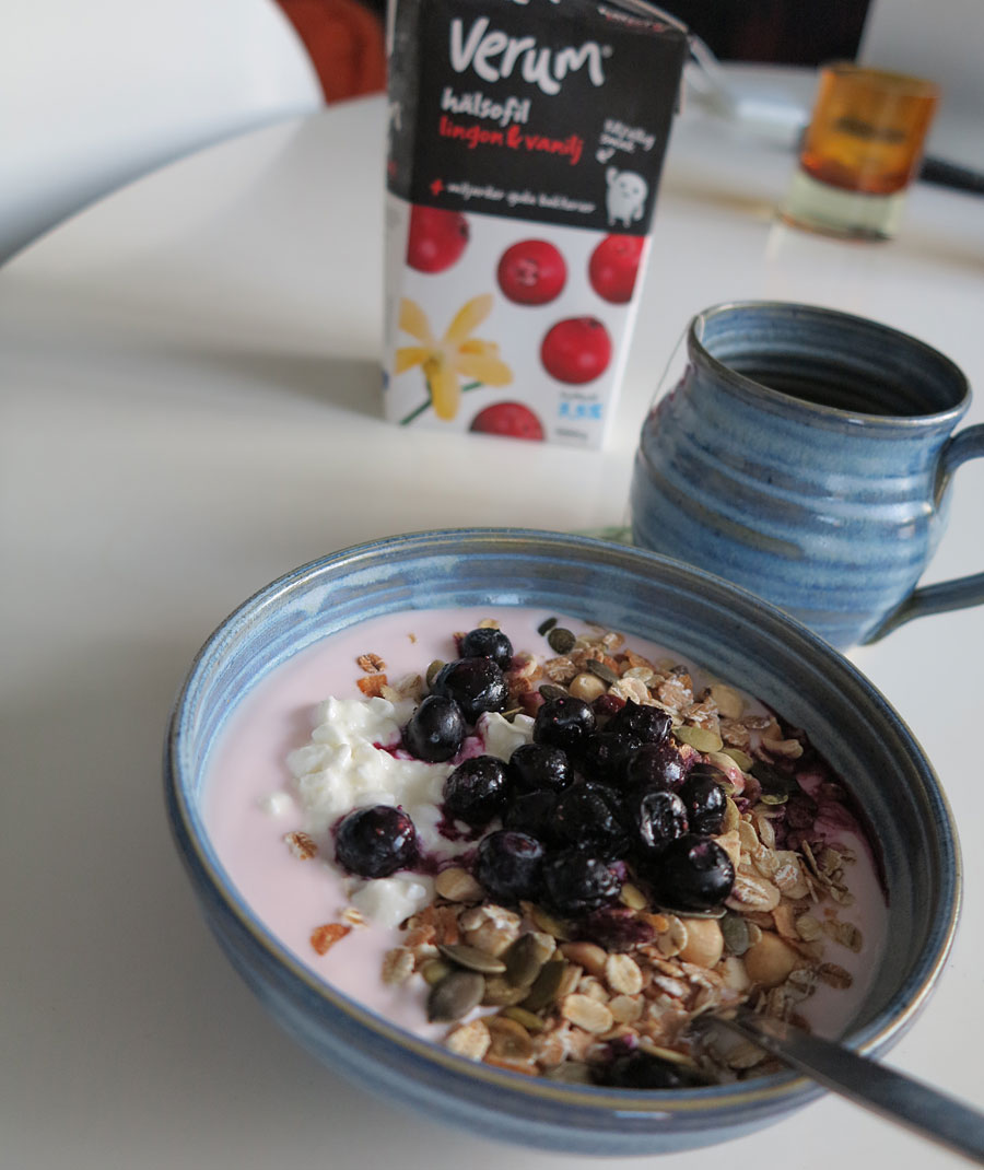 Bästa presenten är att jag tagit tag i en sak jag länge skjutit undan + att jag anmält mig till en kurs jag fått av Jonas, men som ännu är osäker om jag får plats till. Får besked på måndag. HOPPAS! En natt på tur man hand med mannen på spa-hotell nästa helg och dagens sovmorgon får jag också räkna in, bra inför dagen. Först ”födelsedags-PT” ute på Gärdet för en väns man och sen DN Stockholm Halvmarathon. Inför detta laddar jag upp med müsli, keso, blåbär och Verums nya hälsofil med smak av lingon/vanilj jag fick hem för att testa igår. Tummen upp!