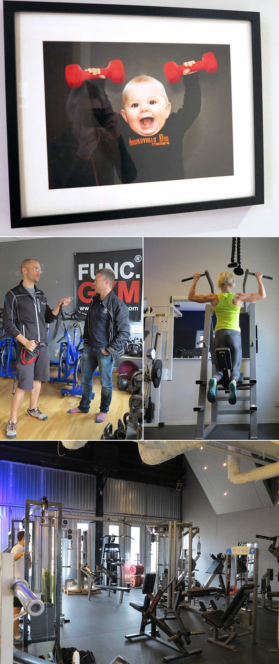 ..visade oss runt på Hudiksvalls Gym där jag sen körde ett uppiggande ryggpass. Gillar lokaler som dessa med robusta maskiner, mycket fria vikter och mer ”hard core” än ”sterilt”. Kanske därför flera av Hudiksvalls tävlande i Bodybuilding tränar här? Men ändå passar gymmet alla med star light i taket, gott om konditionsmaskiner och bra gruppträningslokaler, varav en för att hålla pass med Func Gym (typ av suspension training likt TRX) och kettlebells – bl.a. ledda av Linus Johansson själv och hans fru.