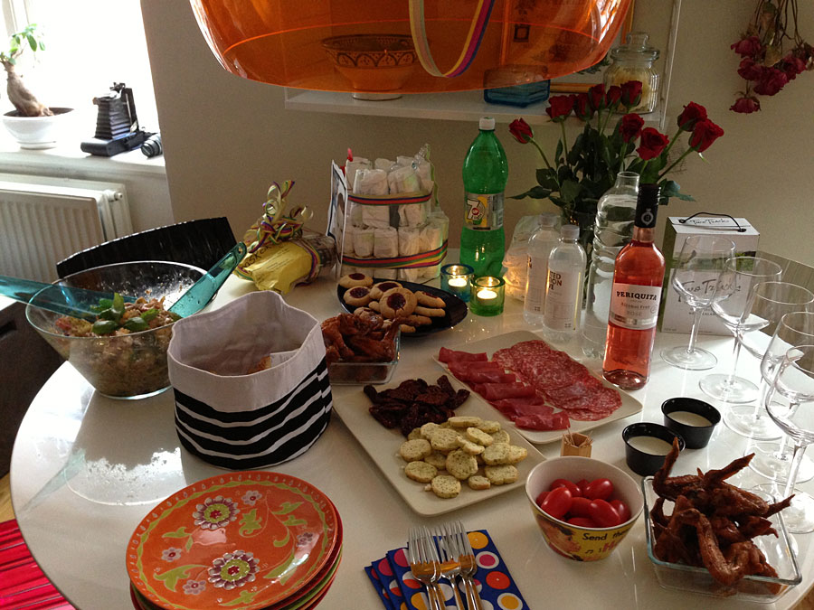 Därför passande att överraska bästa syster med en ”babyshower” mitt i flytten från stan till hus. Istället för att packa upp kartonger bjöd jag och några av hennes vänner på knytkalas med blöjtårta, mumsig plockmat..
