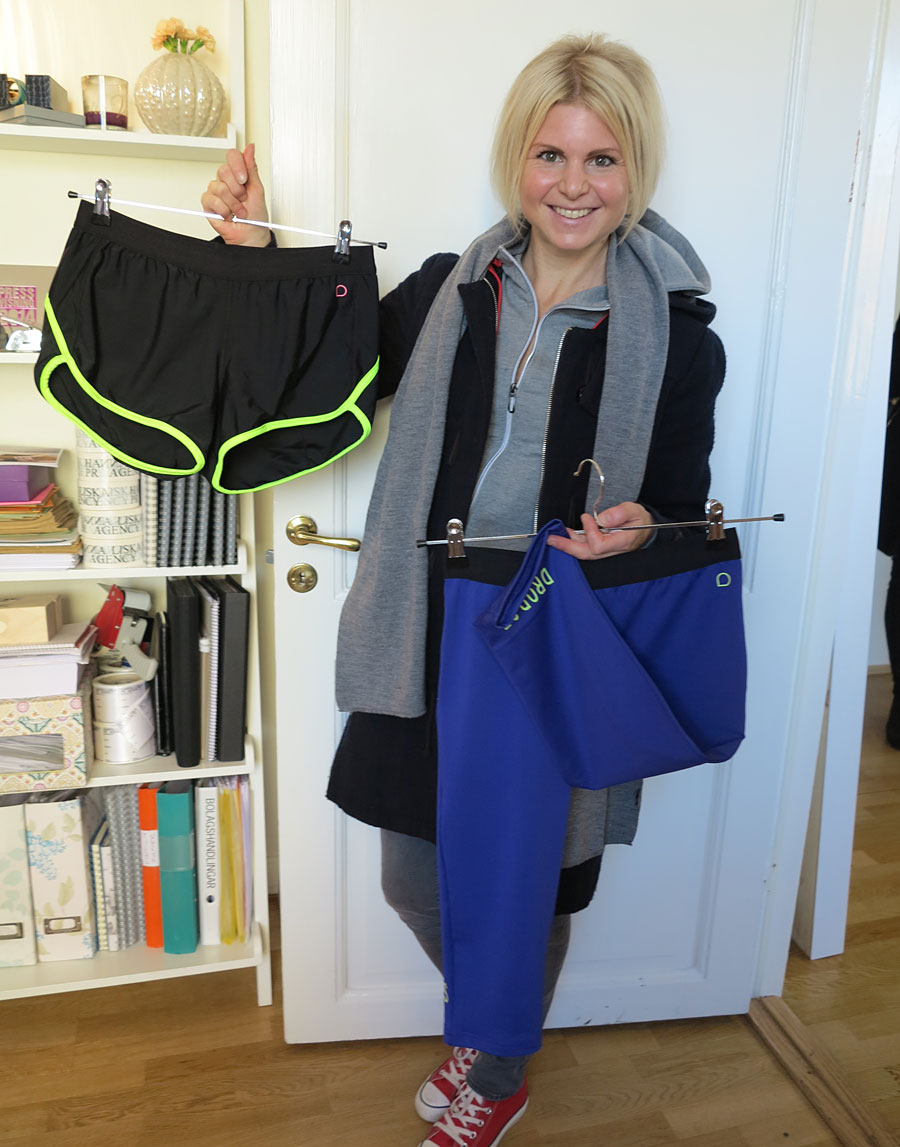 Det är roligt att följa utvecklingen i träningsmodevärlden och DOM har lyckats med en kollektion som syns. Lysande neon kommer verkligen höja energin och dra blickarna åt sig på gymmen i vår. Rent funktionellt har shortsen (som jag håller upp på bilden) kommit med gummibandsresår i midjan istället för knytning, en ny modell av linne med inner-bh kommer och en personlig favorit blev det lösare, längre linnet i kul mönster (nederst till höger). Annars är den klassiska droppformade loggan och ”rumpränderna” kvar.