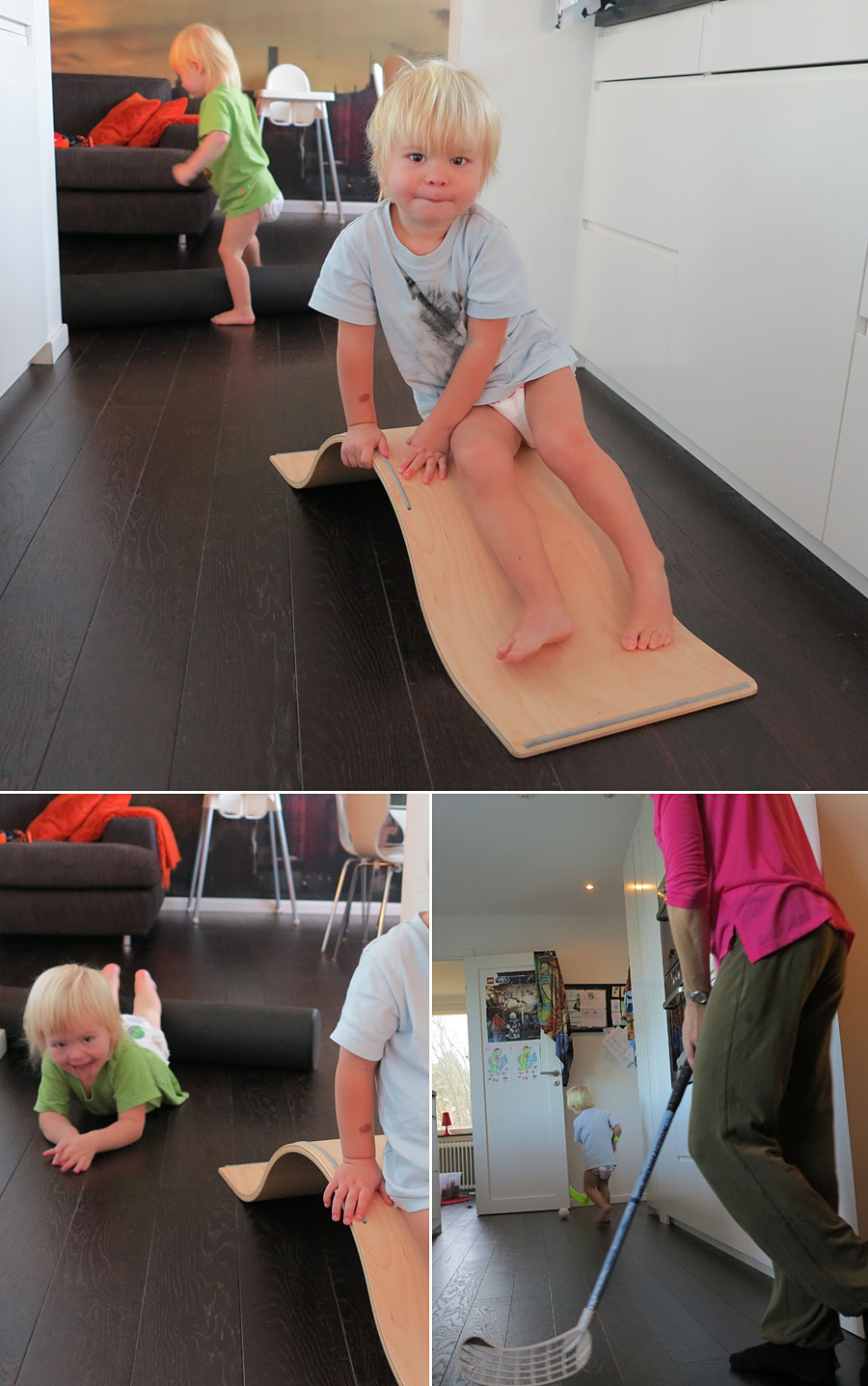 Fredag alltså, och för min del ännu en dag hemma med twinsen medan mannen reser iväg till konventet AMT i Västerås. Igår var det full action trots att vi höll oss inomhus och barn ger så tydliga exempel på vad vi är skapta för – att röra på oss. Bara korta stunder sitter Jonna och Junior framför Bolibomba innan de är igång med någon lek.