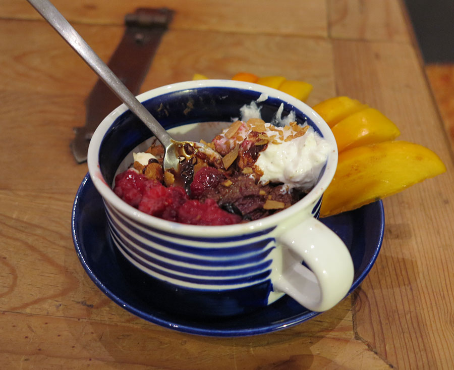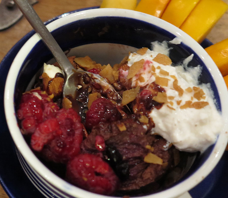 - bär, hackade nötter, kokoschips, frukt, vaniljkesella (lättkesella vispat med vaniljpulver), grädde eller vad du gillar som tillbehör.