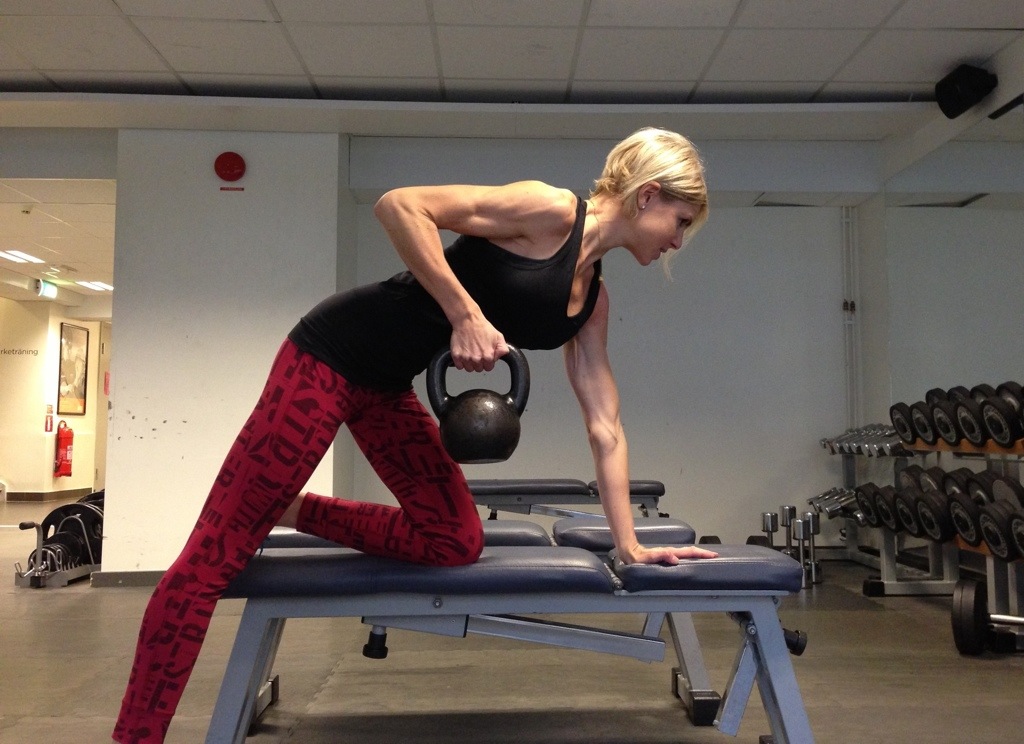 Jag har inte direkt något problem att få kontakt i ryggmusklerna i den här övningen, men däremot får jag ofta ont i ländryggen/svanken, där jag för övrigt har ett diskbråck. Spänner jag magen/bålen för dåligt då eller vad gör jag för fel? Har prövat lite olika ställningar med att flytta handen på bänken längre bak/fram och foten på golvet men det hjälper inte. Har även tittat på många olika filmer som visar just den här övningen för att försöka hitta rätt ställning, men jag ser ju även att du står lite olika på bilden jämfört med på filmen. Hur ska man veta vad som är rätt?