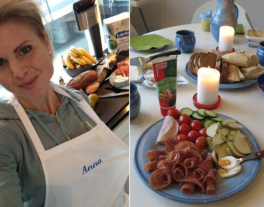 I ett paket tillsammans med chips och hushållspapper kom det här proffsiga förklädet som jag nu fixat finfika i. Strax dyker My Performance-kollegorna upp för kombinerat vän- och företagsmöte. Sofia och Gustav jobbar på med sitt inom friskvård och jag med med benämningen ”anställd” för företaget, men vi gör även projekt ihop. T.ex. har resten av gänget skrivit flera populära böcker inom träning.