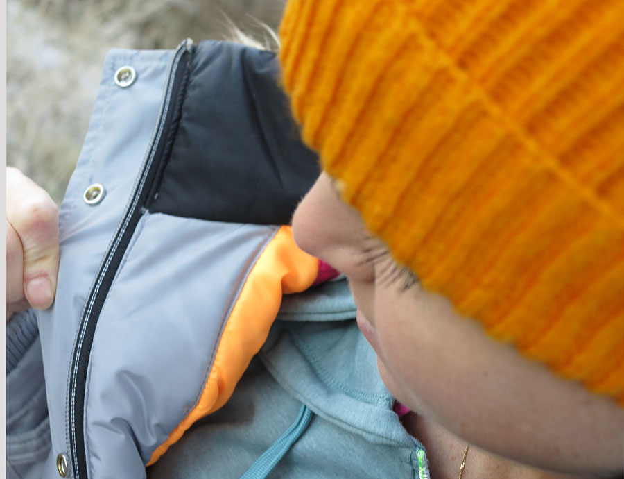 ..som matchar fodret på Röhnischjackan. Mycket viktigt! Orange – en av höstens trendfärger jag fastnat för och som även Jonna fått en vinterjacka i. Både den och min mössa är från HM.