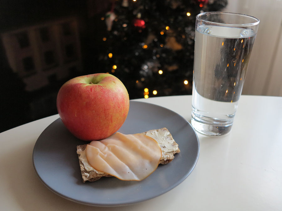 Mellanmål kl. 10: 1 knäckemacka med 1 msk Philadelphiaost och kalkon, 1 äpple och 1 glas vatten.