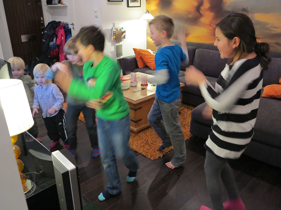 Från 4 är steget inte långt till 6 så i förrgår tog jag med 2 bonusbarn hem från skolan. Visst är det fler att hålla koll på men det är nöjda barn, glada över att ha vänner att prata och leka med. Och dansa.