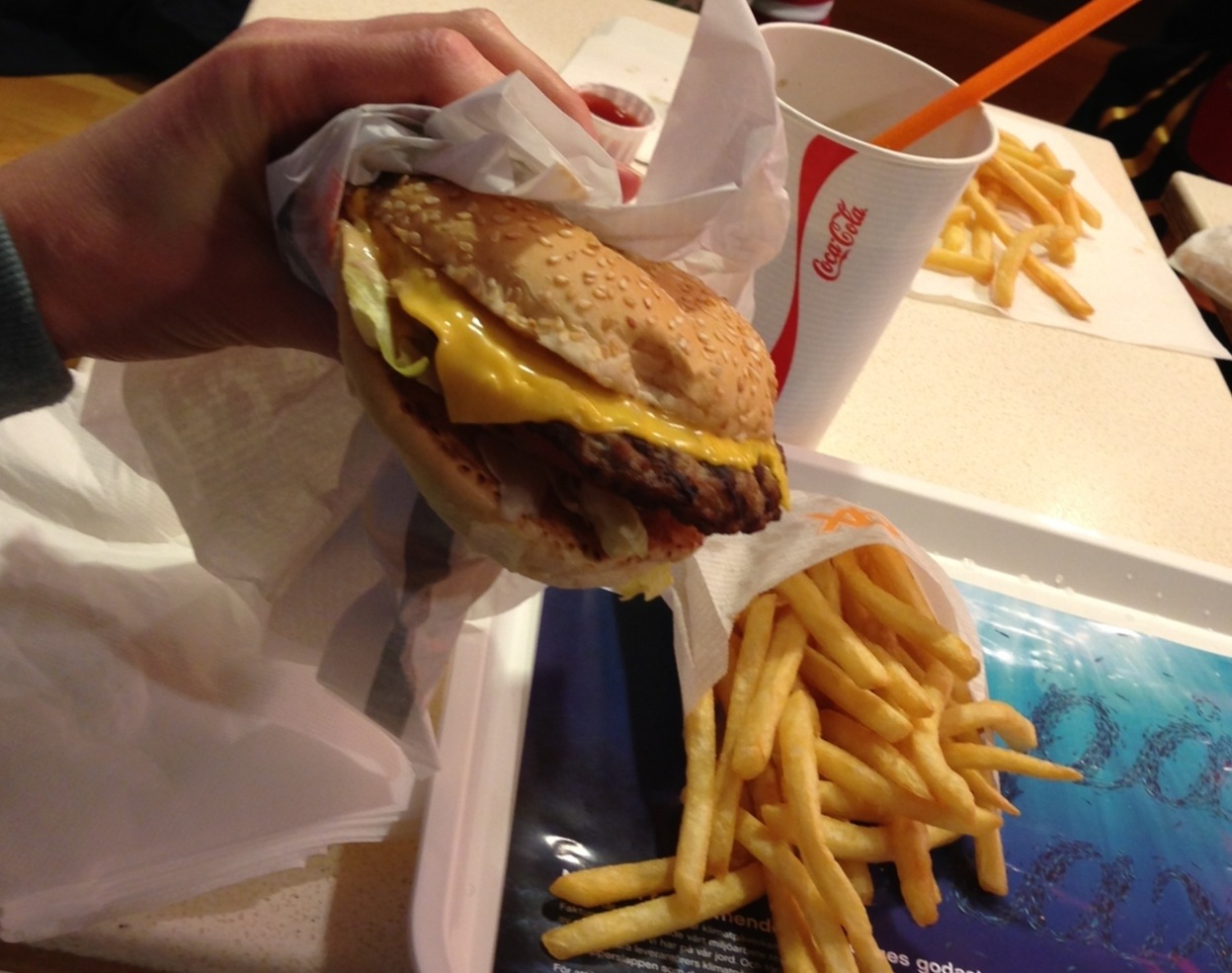 …och traditionsenliga matpaus på Max i Sundsvall. Dock en nyhet – att jag beställde ett Max Original Meal med socker-Cola och pommes istället för ett nyckelhålmärkt Deli Meal med Sprite Zero. Menyn finns som alternativ i kostplanen från Mando och slank lätt ner.