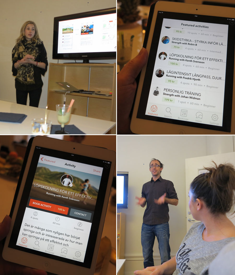 Du laddar alltså ner appen (gratis på AppStore), letar upp den plats (just nu endast i Stockholm, men planen är att lanseras i flera städer och utomlands), sport och tränare du vill ha, bokar, betalar och kör.