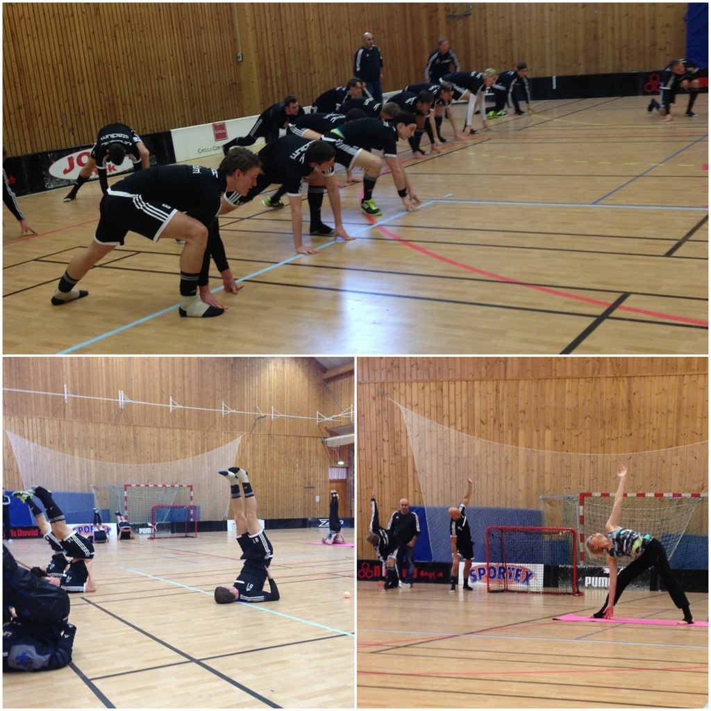Det finns träning som ger direkt utdelning i form av svett, puls, lyckoendorfiner och skön träningsvärk, och det finns träning som kanske (?) inte lockar lika mycket men är minst lika bra. Coreträning är en, för muskler som inte syns utanpå, och rörlighetsträning är en annan. Men när mannen frågade om jag ville leda 15 minuters yoga för AIKs innebandyspelare som han är fystränare för, ville jag gärna. Nog för att jag inte instruerat yoga på ett halvår och är stel som ett spjut av träningsvärk, men precis som jag saknat känslan av arbetande muskler vid styrketräning har jag saknat den skönt avslappnande känslan efter yoga. Kunde därför inte motstå, plus att det alltid är extra utmanande och roligt att hjälpa några icke vana yogisar.