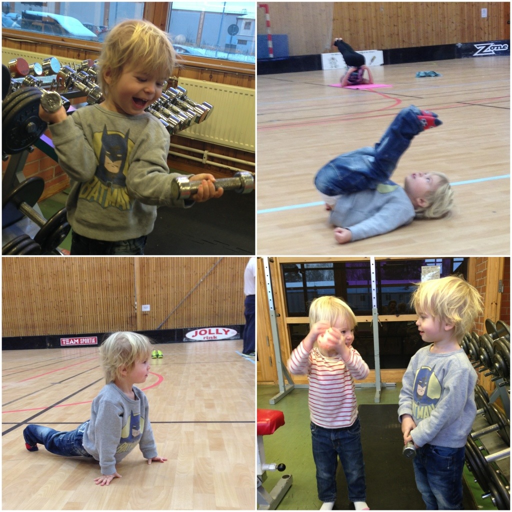 En grabb som inte har problem med sin rörlighet är Junior. Han och Jonna var också med och kollade in hallens lilla gym och yogade med mig. Barn alltså – bästa förebilderna!