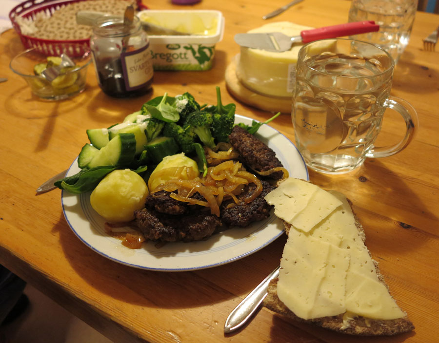 Eller tillbehöret av familjen, Dalalugnet och knäckemackor? Jag skulle kunna leva på knäckebröd (OBS! Inte små Wasa Husman-rutor utan de där stora runda kakorna) med smör och ost, men inte hemma i stan. De hör liksom inhop med landet. Och svärmors biffar.
