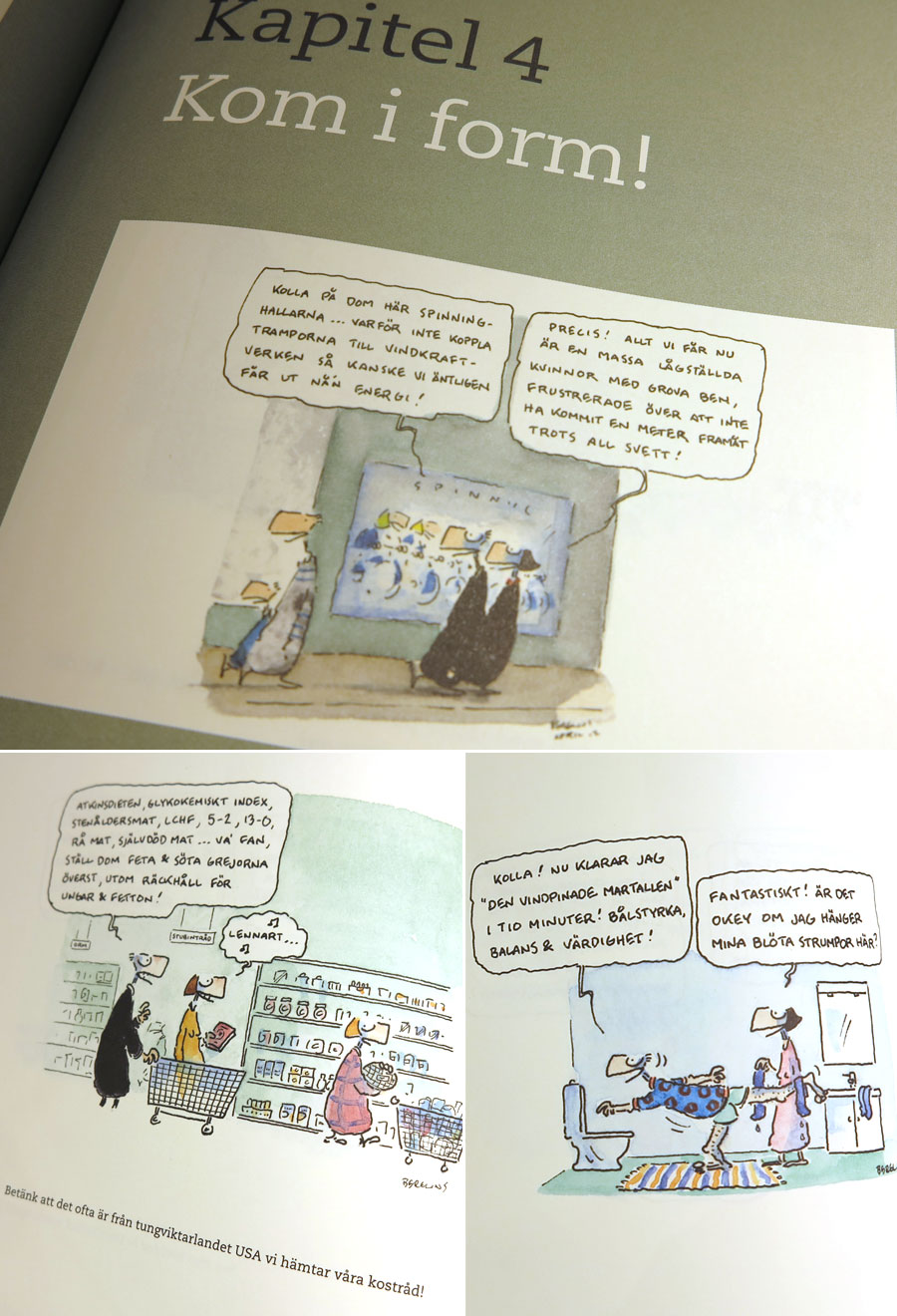 Ett gott skratt förlänger livet – precis som träning i lagom mängd. Kombinerar man dessa två ingredienser borde man alltså leva aslänge, något som bl.a. Magdalena Bibik tagit fasta på när hon skrev ”Världens roligaste träningsbok”, liksom Jan och Maria Berglin i ”Berglins stora bok om kropp & hälsa” som du ser ovan. I den hittar du humoristiska serier som lättar upp vilken grå dag som helst.