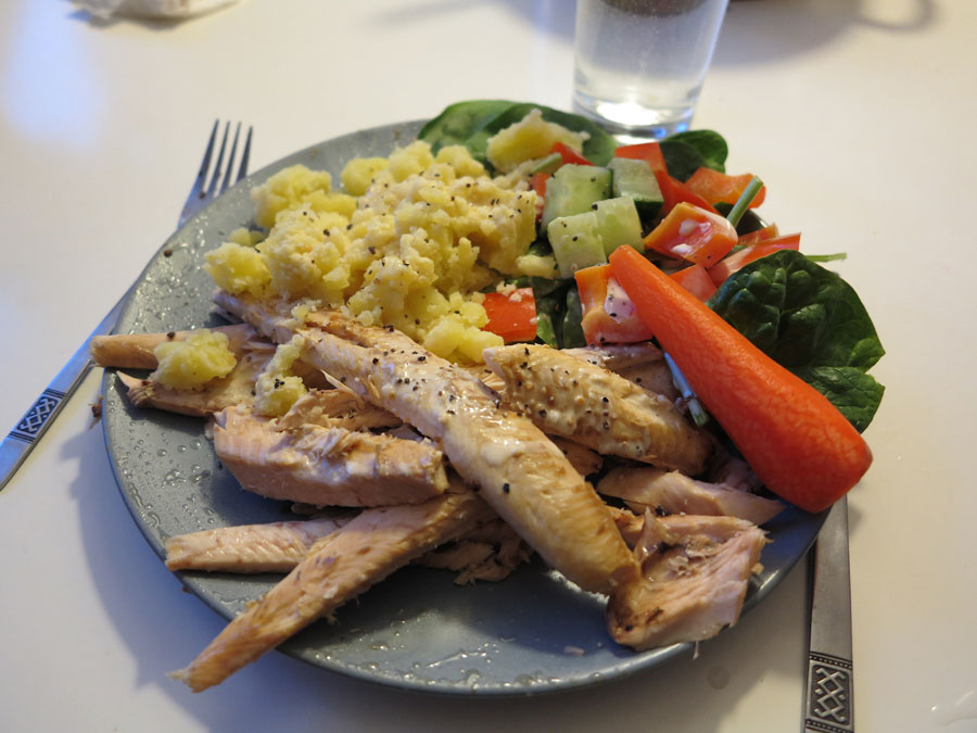 ..och lagade världens godaste rödingmiddag – fullproppad med omega3-fett. Tillsammans med mandelpotatis och morötter  från Jorm, sallad och gräddsås är det bland det bästa jag vet.